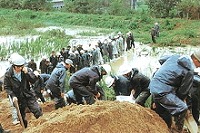 戦後は、河川整備の進捗とともに、堤防の決壊を伴う甚大な被害は発生していませんが、増水のたびに河岸侵食や護岸崩壊などの被災が各所で繰り返し発生しています。また、近年の平成16年10月の台風23号による洪水では、戦後最大規模の流量を記録しています。
