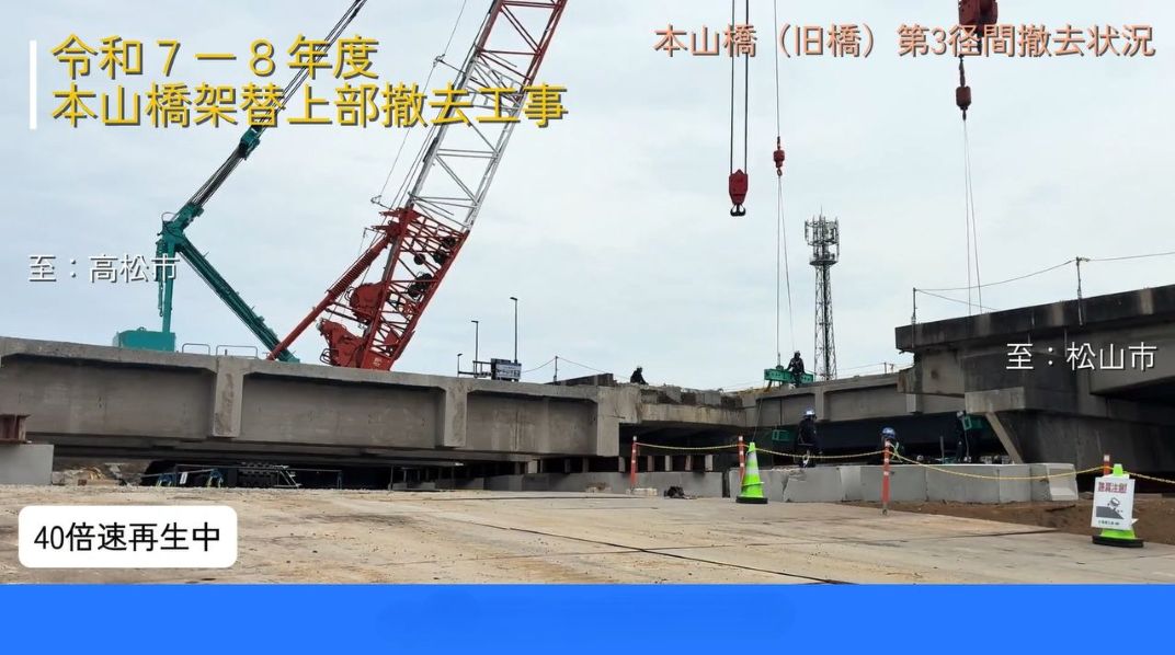 橋梁上部工(本山小橋)の桁架設が完了するまでの動画