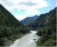 ■みずべの魅力 大歩危・小歩危は、四国で最も有名な景勝地のひとつです。 四国山地を横切る吉野川が、長い年月をかけて岩肌を削り取ってできた大規模な渓谷で、 深い谷の個性豊かな岩の表情と周囲の自然とが、一体となって目に飛び込んできます。 それらはひとつとして同じ景色ではなく、立つ場所ごとにさまざまな景色が楽しめます。 大歩危・小歩危の景色は、遊覧船に乗っても楽しめます。奇岩の合間を縫って航行してくれるので、 渓谷をもっとも身近に感じられる手段として人気があります。 さらに渓谷を「体感」したいならラフティングが最適です。 真っ白なしぶきが上がる中を果敢に漕ぎ切るエキサイティングなものから、 丁寧にインストラクターがついてくれるものまでどんな人でも楽しめるようになっています。 ■歴史 ■環境 大歩危渓谷を形成する礫質片岩(レキシツヘンガン)は、徳島県の天然記念物に指定されています。