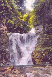 ○薬師谷渓谷は鬼ケ城山と権現山とにいただかれ、奇岩と清流の間をぬって約900m程の遊歩道が続きます。銭ケ淵、岩戸の滝、万代の滝、雪輪の滝、千畳敷、三段の滝、ひょうたん池の欧穴。澄んだ急勾配の渓流で谷は、小さいながらもダイナミックな景観が見られます。花崗岩の岩肌と黒松、赤松、山びわ、みみずばい等の常緑広葉樹、葛生植物が見られます。また6月下旬から8月末日までの間、渓流の入口では、そーめん流しも行われています。