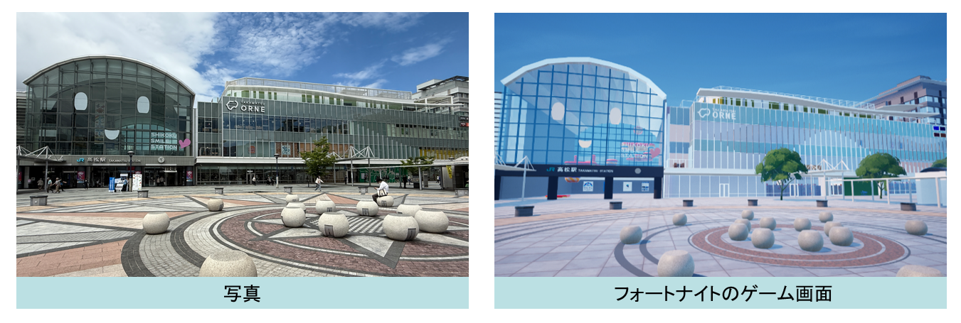 国道11号とサンポート高松をフォートナイトで再現!(香川河川国道事務所 公式X)