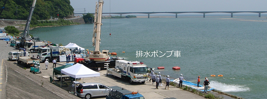 現在、高知河川国道事務所では、6台の排水ポンプ車が配備されており、その内訳は150m3/分1台、60m3/分1台、30m3/分4台となっています。平成10年以降、台風などの水害発生時に19回の出動実績があります。