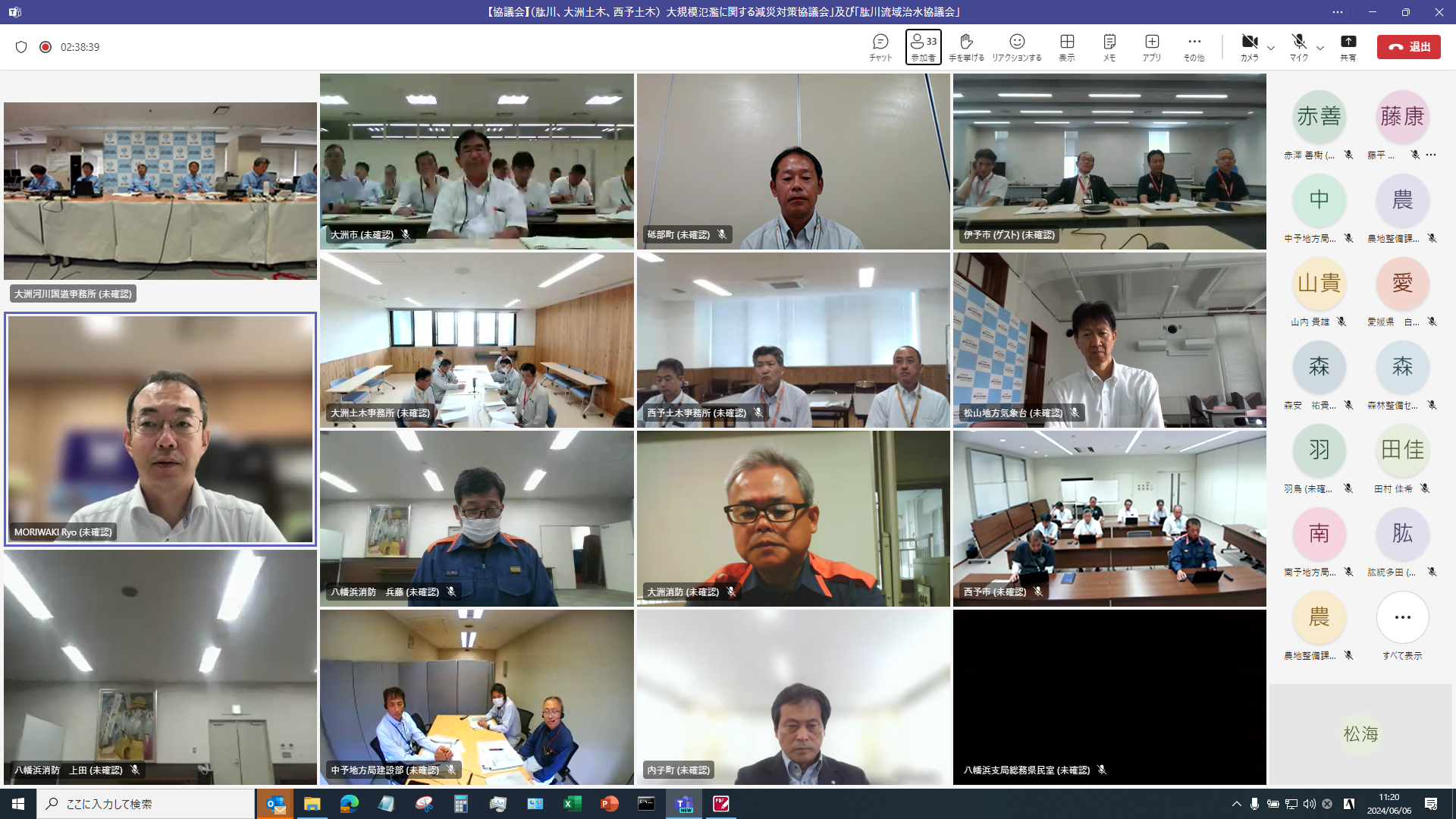 令和6年出水期に備え、肱川流域(水防災)緊急対応タイムラインにおいて状況に応じた意思決定や判断、それぞれの防災行動の確認を行うため、タイムライン意思決定(RPG)訓練を実施しました。