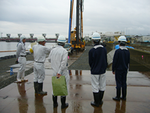 ・旧吉野川中喜来箇所の堤防耐震工事現場における杭打ち機械等の見学