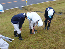 ●堤防維持工事(除草)現場での監督業務体験
