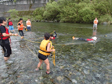 (右)川に流されたときの正しい体勢の指導