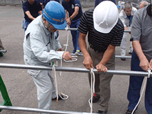 ロープワーク講習会は約40名の参加者に、避難誘導に役立つ「連続止め結び」や人命救助に役立つ「もやい結び」などについて、実際にロープを使って体験していただきました。