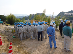 平成24年11 月8日(木)地域の将来を担う技術系の高校生に、実際の建設工事現場において「見る」「触れる」事により、「貴重な経験」「新しい発見」をしていただき、徳島の発展に貢献できる技術者に育つことを目的に、高校生の建設工事現場見学会を開催しました。