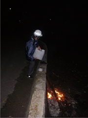 毎年度、不法投棄防止強化月間に併せて行われている夜間パトロールは、午後6時から午後9時までの巡回中、小規模な野外焼却2件を発見し、いづれも巡視員により消火を行いました。