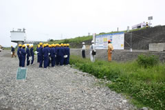 当日は、それぞれの現場にて、担当者からの説明を受けた後、改良工事現場や堤防の工事現場を見学しました。