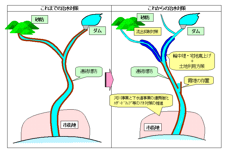 ・流域対策等の新たな方策を導入し、治水対策のメニューを多様化。