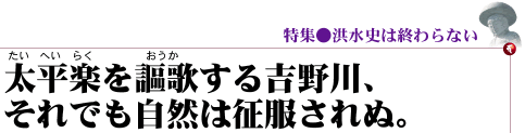 | 大正元年9月23日。吉野川の災害史上に今も生々しく残る「大正元年洪水」が流域を襲いました。南海上から徳島の海岸部をかすめて通った台風が阪神地区に上陸し、徳島の最大風速は北西の風16・7m/sにすぎなかったが、徳島の降水量は551mm。台風最接近時には津波のような大波が打ち寄せ、高潮被害も発生しました。徳島の大平野は、”見渡す限り濁水満 々“で、一面泥の海と化していました。高いところでも床上浸水、低いところでは家屋が流され、屋根に登ったまま海に流されて行く人もあったと伝えられています。死者81人、行方不明14人、家屋全壊426戸、床上浸水26,708戸。これほど浸水地域の広い記録的な大洪水は、吉野川流域ではこれ以降おこっていません。 |