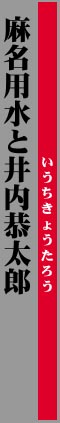 麻名用水碑には、先の碑文に続いて、「然レトモ主唱者ハ最初ヨリ一身ヲ犠牲トシ隠忍自重遂ニ今日有ルヲ到セリ」と記されている。主唱者とは、むろん井内恭太郎のことである。名西高校の南にある水利組含事務所前には、彼の銅像があって、その碑文には、その人となりを「剛直」にして「敦篤」と刻んである。