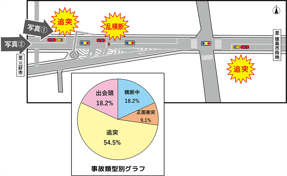 また、隣接する横断歩道までが遠いため、乱横断も発生するなど、人対車両事故も発生していました。