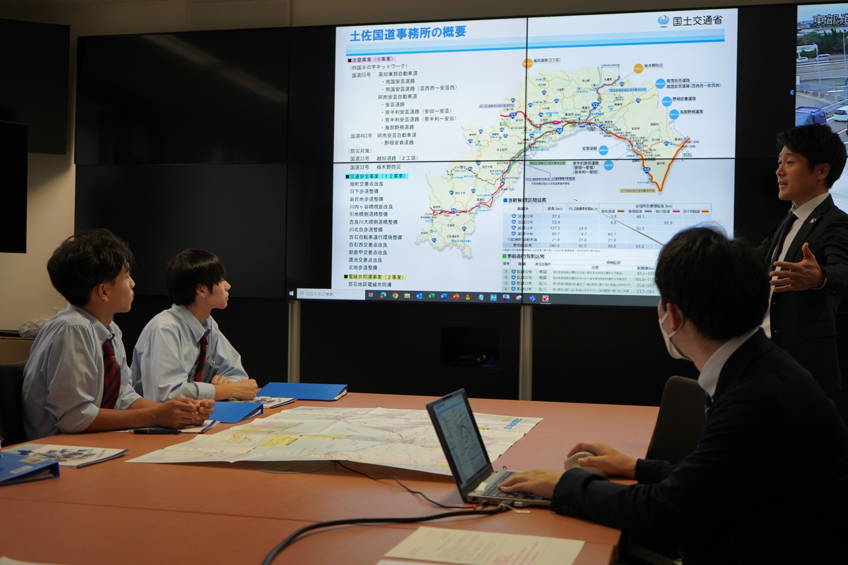 四国地方整備局土佐国道事務所では、中学生から大学生までのみなさんへ四国地方整備局の事業や施設についてもっと知っていただくとともに、みなさんのご意見を聞かせていただく場として事務所見学を受け入れております。社会科見学などの機会に土佐国道事務所へ来てみませんか。お申し込みをお待ちしております。※学校単位での受付となります。