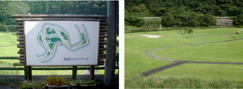 ■渡ってすぐを右に曲がると、広井地区にある蛍湖ゴルフパークへ到着します。