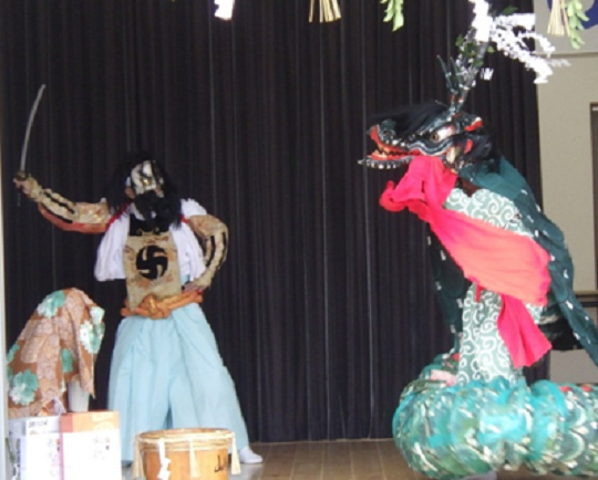 トリはお待ちかね、 ”山鳥坂鎮縄神楽保存会” のみなさんによる 『 オロチ退治 』
