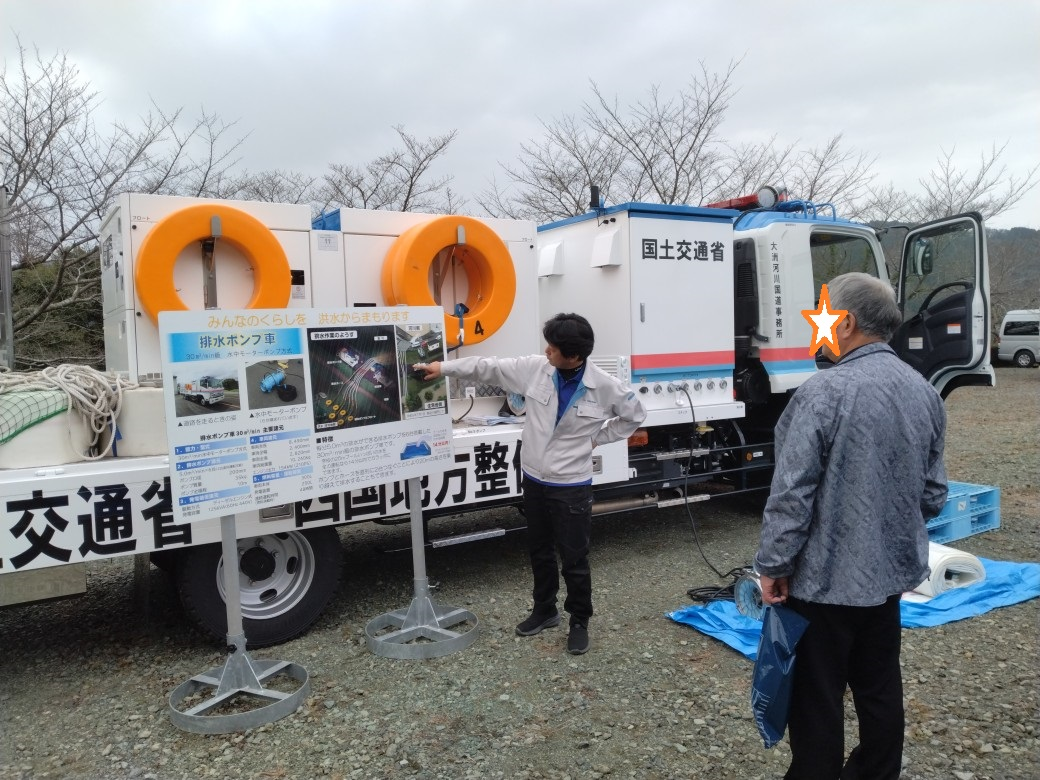 災害対策用車両は、排水ポンプ車の展示を行いました。パネルを用いて車両についての説明