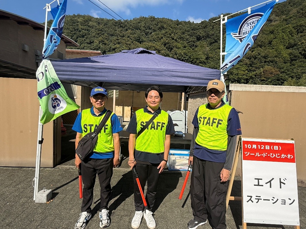 当事務所スタッフ組は「清流の里ひじかわ」で休憩所の設営・交通整理を行いました。