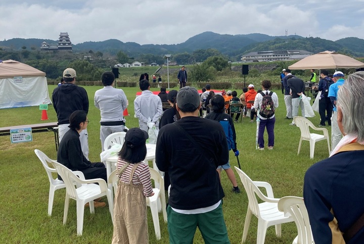 朝早くから多くの方が参加されていました。大洲会場では歴史ある大洲城を眺めながら清掃活動