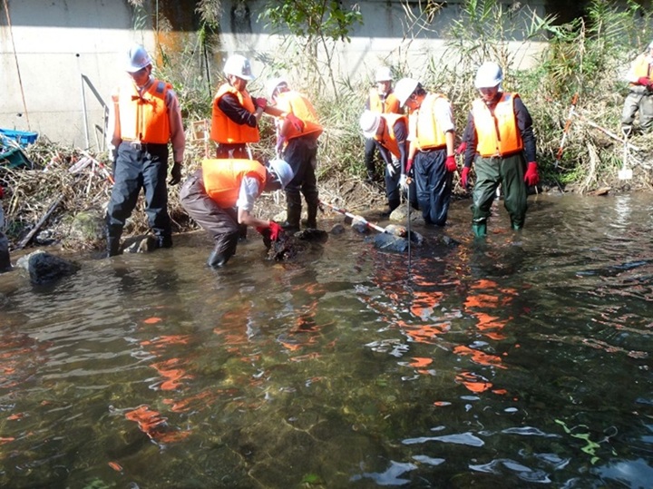 10月27日(月)午後に河辺川にてアオサナエの保護に関する作業を行ってきました。