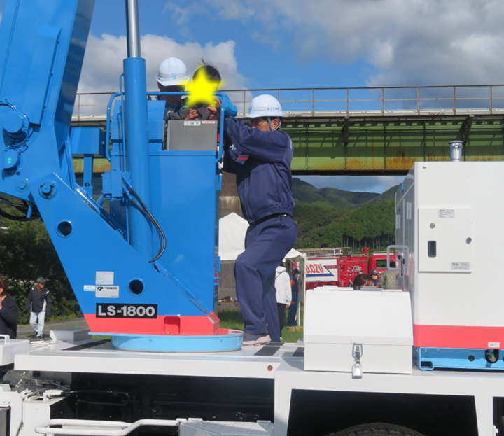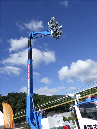 続いて、大洲河川国道事務所の災害対策車(照明車)の展示と操作体験コーナー。