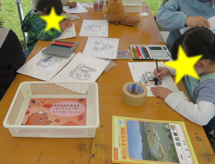 そして、野村ダムをキャラクター化した「のむだむちゃん」塗り絵。