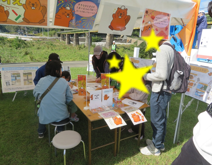 坂ダム工事事務所)がそれぞれ趣向を凝らし、子どもから大人まで楽しんでいただけるブースに