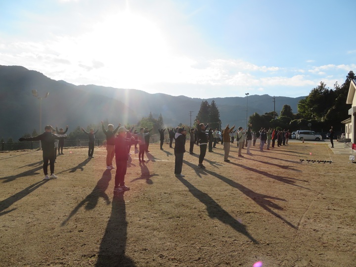 みんなで準備体操。青空の下でのラジオ体操はとても気持ち良かったです。