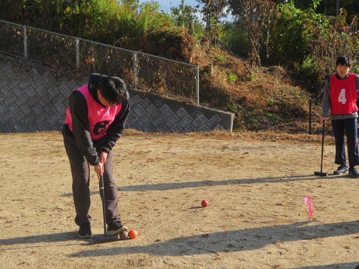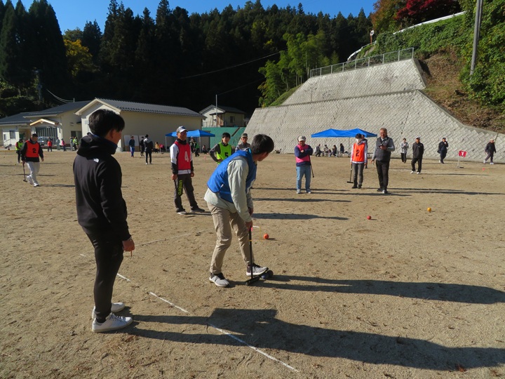 素晴らしい秋晴れのもと、11月23日(日)に岩谷コミュニティセンターで『岩谷地区秋季クロッケー大会』が開催されました。