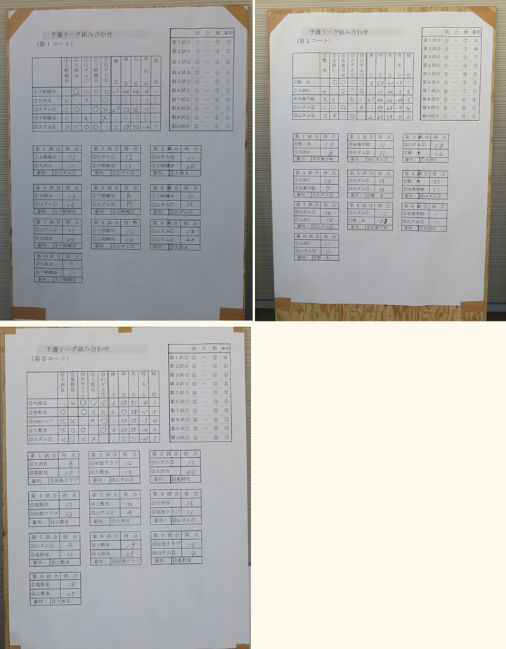 3コートに5チームずつに分かれてリーグ戦が行われました。