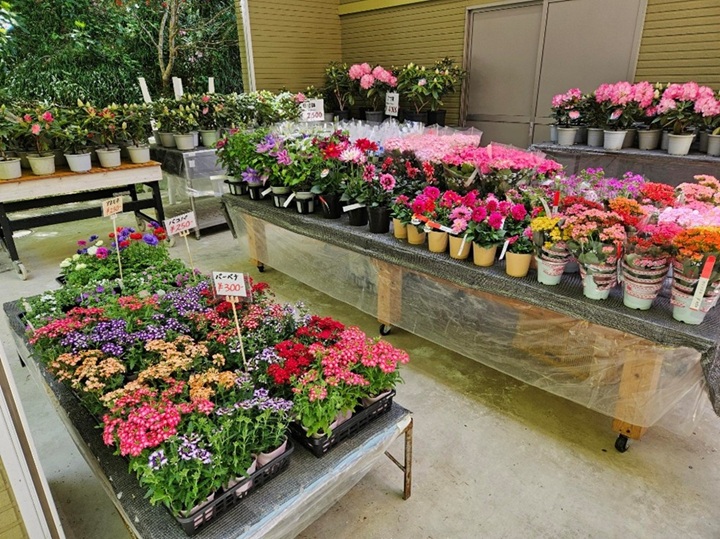 シャクナゲ谷入口では、地域の方々が運営する季節限定の売店も開かれており、丁寧に育てられたシャクナゲが並び、購入することもできます。