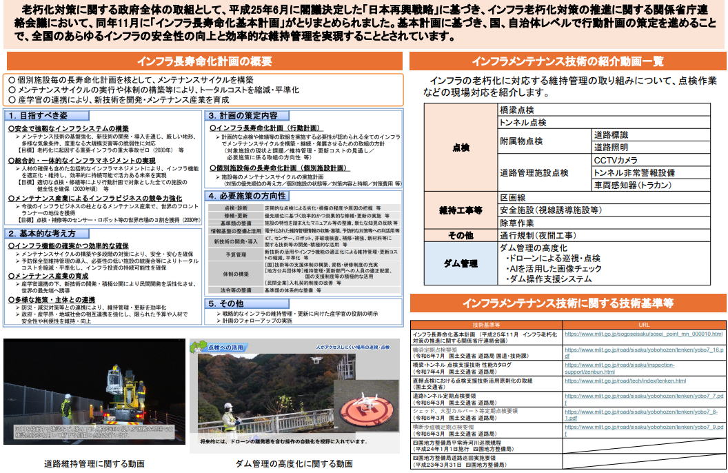 で、全国のあらゆるインフラの安全性の向上と効率的な維持管理を実現することとされています。